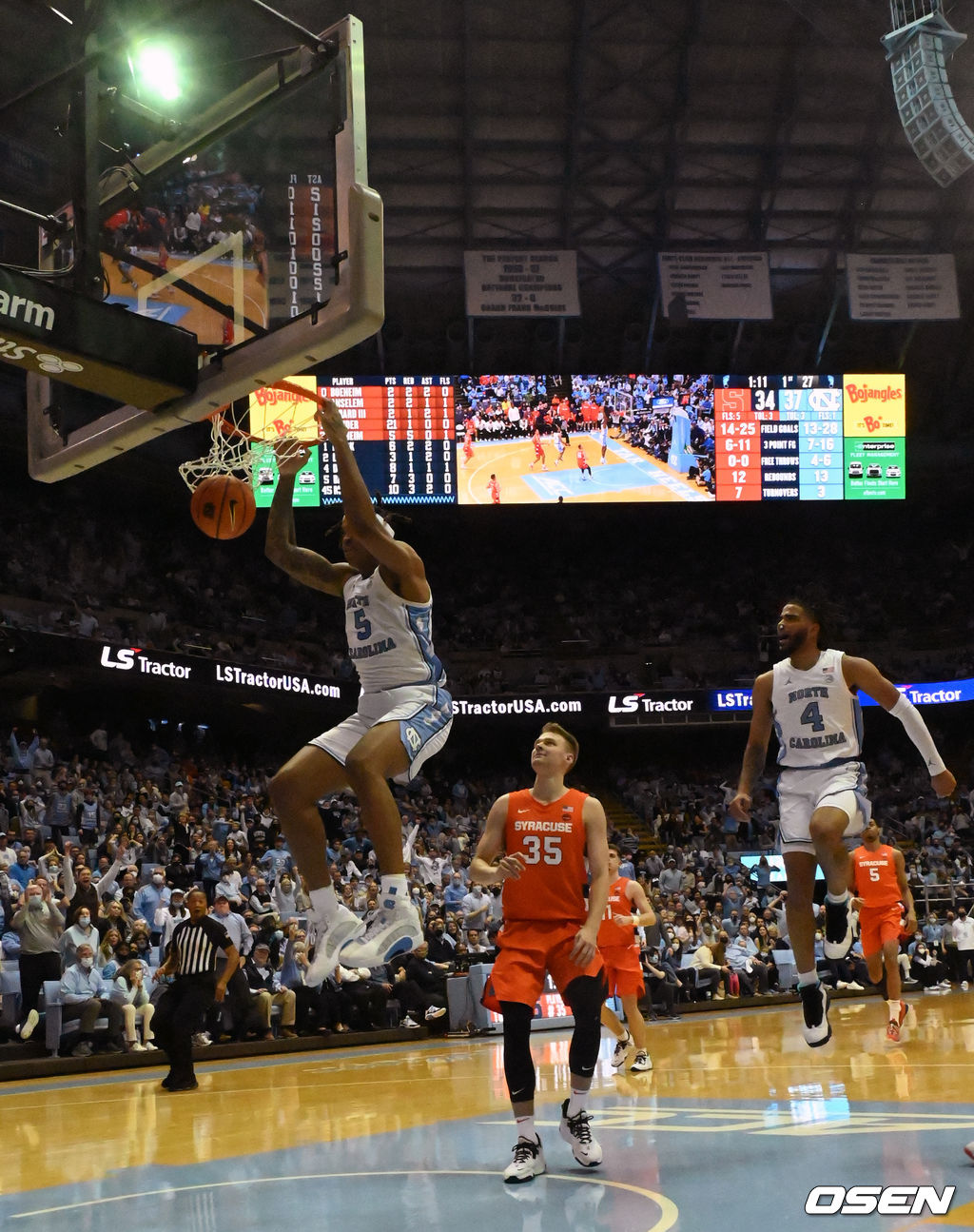 UNC 타르힐스는 1일(한국시간) 미국 노스캐롤라이나주 채플힐 홈구장 딘스미스 센터에서 개최된 ‘2021-22 ACC 정규시즌 마지막 홈경기’에서 시라큐스 오렌지를 88-79로 이겼다. 컨퍼런스 14승 5패가 된 UNC는 ACC 3위를 지켰다. 시즌 전체는 22승 8패다.