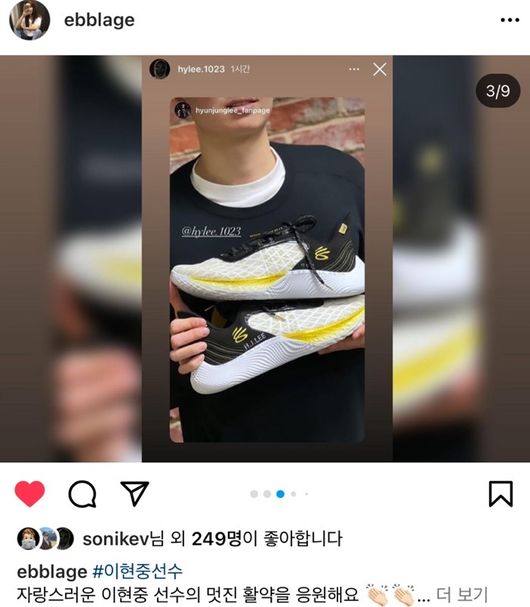 선물을 받은 이현중은 "기분 너무 좋았죠. 제가 아직 큰 선수가 아닌데 저에게 한글버전 커스텀을 해주셔서 기뻤어요. 신발이 예쁘더라고요. 연습 때 신기도 아까웠어요. 경기 때 한 번씩 신고 싶었는데 발에 길들여야 해서 훈련 때 신었죠. 작가님 손재주가 너무 좋으시더라고요"라며 기뻐했다.