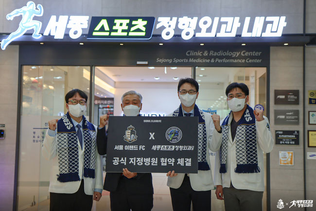 세종스포츠정형외과는 2020시즌부터 서울 이랜드 FC 공식지정병원으로 함께하며 전문적이고 체계적인 부상 관리 시스템을 구단에 제공했다. 2022시즌에도 메디컬테스트와 철저한 부상 검사·치료 등 서울 이랜드 FC 선수들의 건강을 책임질 예정이다.