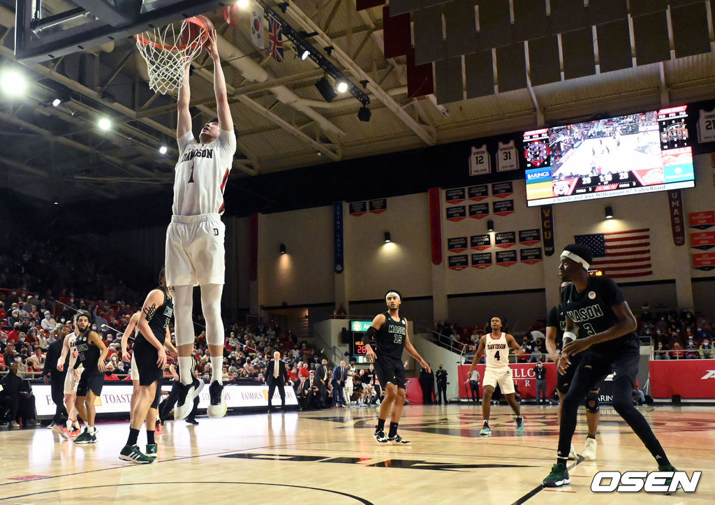 이현중은 3일 조지 메이슨전에서 의미 있는 대기록을 달성했다. 대학통산 1천점 달성에 단 8점만 남겨뒀던 이현중은 전반전 3점슛 2개와 점프슛 하나로 대기록을 달성했다. 탄력 받은 이현중은 대학 첫 덩크슛까지 터트린 뒤 세리머니까지 펼쳤다. OSEN이 생생한 현장을 카메라에 담았다. 영상을 보면 이현중이 매 경기서 얼마나 심한 견제를 뚫고 득점을 해내고 있는지 잘 알 수 있다.