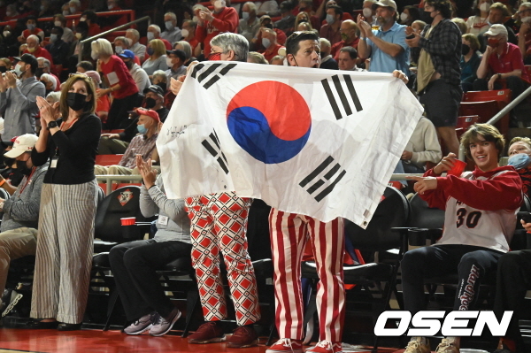 미국 팬들 중에서 태극기를 펼쳐보이는 중년의 남성도 보였다.이미 여러 사람들이 이현중의 NCAA 토너먼트 진출과 NBA 드래프트 지명을 기원하고 있다. / jasonseo34@osen.co.kr