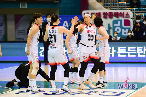 치열한 시소 게임을 펼치던 BNK썸은 4쿼터 김한별이 골밑에서 압도적인 존재감을 보였다. 승부처에서 페인트존 득점을 성공시키며 점수 차이를 벌렸다.