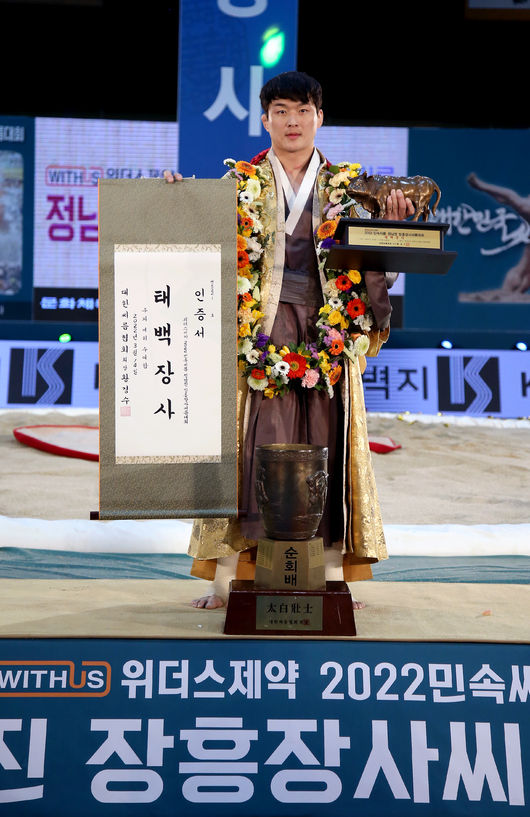 문준석(30·수원특례시청)이 위더스제약 2022 민속씨름 정남진 장흥장사씨름대회에서 개인 통산 7번째 태백장사 타이틀을 획득했다.