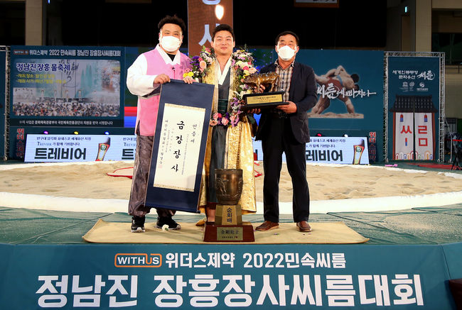 문형석(33·수원특례시청)이 ‘위더스제약 2022 민속씨름 정남진 장흥장사씨름대회’에서 금강장사(90kg 이하) 타이틀을 차지하며 ‘형제 장사’에 등극했다.