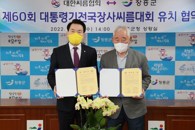 대한씨름협회는 16일 전남 장흥군과 ‘제60회 대통령기전국장사씨름대회’ 협약식을 체결했다.