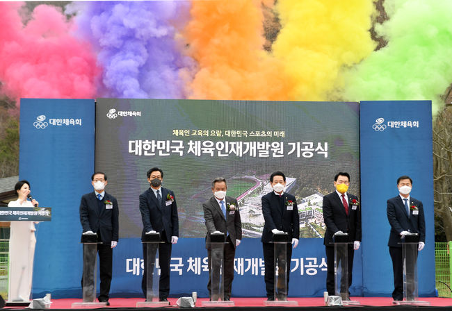 대한체육회는 18일 전남 장흥군 부산면 대한민국체육인재개발원 건립부지에서 체육인 교육의 요람 ‘대한민국체육인재개발원 기공식’을 개최했다.