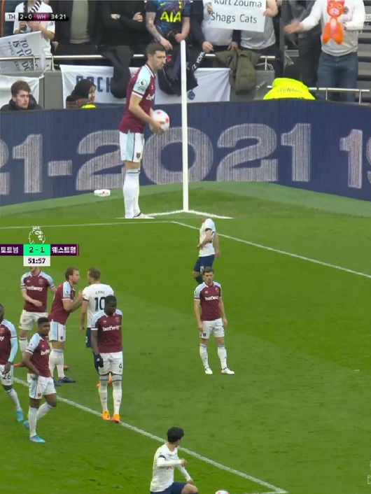 그래서였을까. 앙심을 품은 주마는 후반 6분 토트넘의 프리킥 상황에서 뒤돌아서 있는 손흥민을 상대로 공을 후려찼다. 공에 맞은 손흥민이 넘어지면서 부상을 당할 수 있는 아찔한 장면이었다. 누가 봐도 주마의 고의적 행동이었다.
