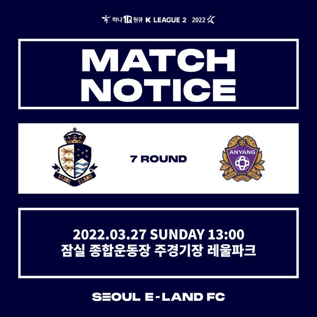 서울 이랜드 FC가 27일 목동종합운동장 주경기장에 개최될 예정이었던 7라운드 안양전 대체 홈구장으로 잠실종합운동장 주경기장을 선정했다.