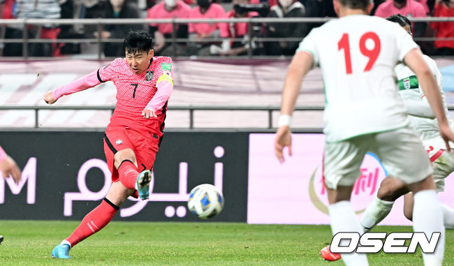 손흥민은 지난 24일 서울월드컵경기장에서 열린 이란과 2022 국제축구연맹(FIFA) 카타르 월드컵 아시아지역 최종예선 A조 9차전 홈경기에서 전반 추가시간 무회전 킥으로 이란 골키퍼를 뚫어내는 득점으로 선제 결승골을 뽑았다.