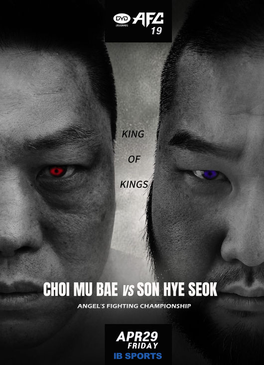엔젤스파이팅챔피언십(AFC)는 오는 4월 29일 서울 신도림 테크노마트에서 공식 넘버링 대회 AFC 19을 개최한다고 선언했다. 이번 대회의 메인 매치는 '올드 보이의 귀환'이라는 컨셉으로 한국 격투기의 레전드인 최무배가 후배 손혜석과 격돌한다.