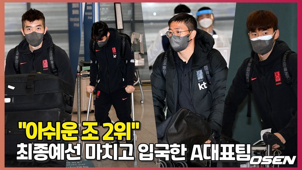 A대표팀 선수들이 귀국해 입국장을 나서고 있다. 2022.03.30 / hyun309@osen.co.kr