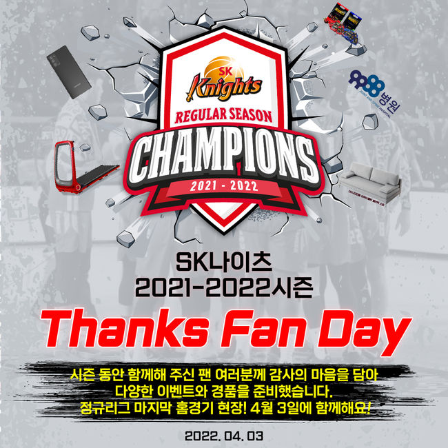SK는 마지막 홈 경기를 맞아 한 시즌 동안 응원해 준 팬들에게 감사하는 마음으로 추첨과 이벤트 등을 통해 봄소와 소파, 핸드폰, 러닝 머신, MRI 촬영권, 허쉬 초콜렛 세트 등 다양하고 풍부한 경품을 관중들에게 증정하는 'Thanks Fan Day' 이벤트를 실시한다.