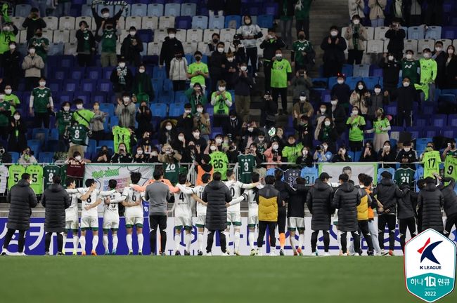 수원-전북전이 끝난 이후 만난 한 팀 관계자는 "육성 응원 금지는 지금 현실에 너무 맞지 않는 정책이라고 생각한다"라면서 "관중 입장도 제한적인 상황인데 응원까지 제한되니 구단 입장으론 여러모로 힘들다"라고 한숨을 내쉬었다.