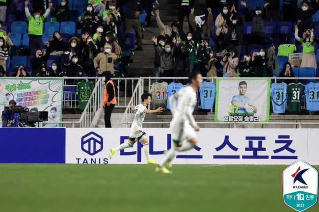 전북은 지난 5일 오후 7시 수원월드컵경기장에서 열리는 '하나원큐 K리그 2022' 8라운드에서 수원 삼성과 맞대결서 김진규의 팀 데뷔골을 앞세워 1-0 승리를 거뒀다.