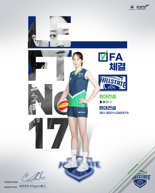 현대건설 힐스테이트 배구단은 6일 FA 선수 4명과 재계약을 공식 발표했다.