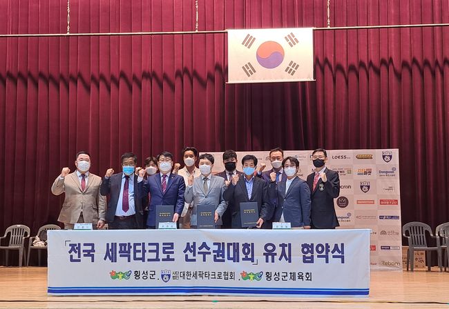 대한세팍타크로협회와 횡성군과의 MOU 체결식이 20일 강원도 횡성군 국민체육센터에서 진행되었다. 이날 열린 대한세팍타크로-횡성군 MOU체결식에는 대한세팍타크로협회 오주영 회장, 안중기 횡성군수 권한대행 부군수, 횡성군체육회 정명철 회장이 참석했다.