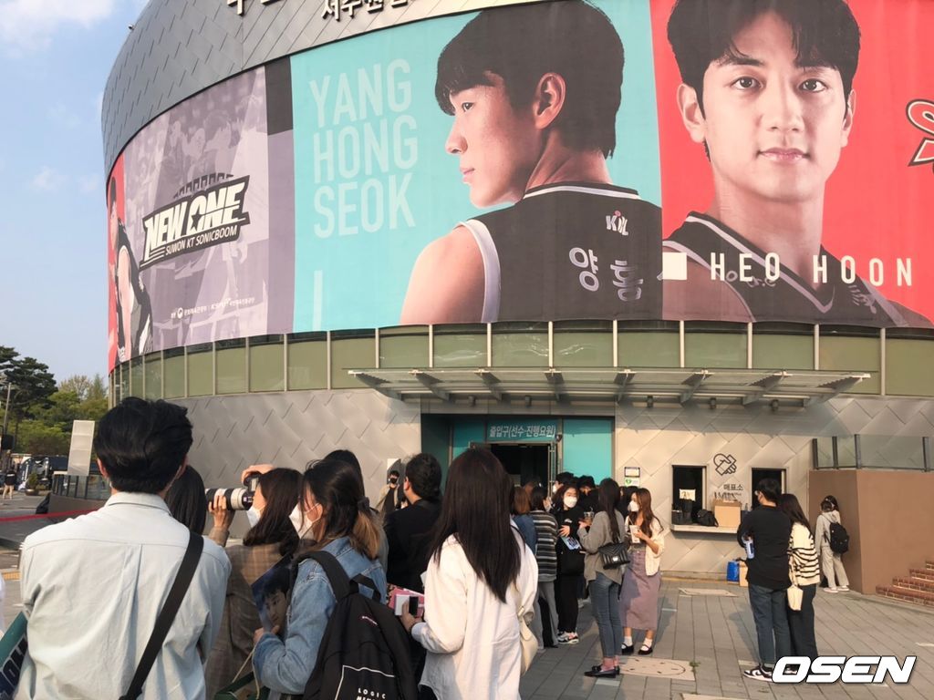 팬클럽 회원인 이가영 씨는 “4강전을 기념하고 허훈 선수가 잘하라는 의미에서 응원피켓을 1000개 만들었고 오늘 300개를 배포했다. 허훈 선수가 경기 중 솔직하게 감정을 표현하는 것이 매력적이다. 긍정적인 에너지가 좋다. 허훈 선수가 다음 경기에 이기면 3-0으로 끝낸다는 의미로 ‘손가락 세 개’ 세리머니를 해주시면 좋겠다”고 희망했다.