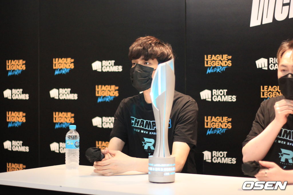 경기 후 기자실 인터뷰에 응한 이성진은 “초반 실수를 딛고 힘을 모아 우승할 수 있었다”며 미소를 지었다. 이성진에 따르면 롤스터Y는 초반 ‘돌진 조합’으로 경기를 풀려고 했으나, 여의치 않았다. 이성진은 “‘돌진 조합’은 타이밍이 중요한데, 초반에 엇갈렸다. 그래서 ‘원거리 딜러 중심 조합’으로 전략을 수정한 뒤 좋은 결과를 만들 수 있었다”고 말했다.