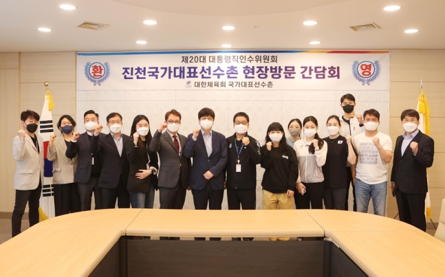 20대 대통령직인수위원회(이하 인수위)에서 활동하는 인사들이 25일 낮 12시 충북 진천 국가대표선수촌을 찾아 국가대표 선수들과 지도자들의 의견을 들었다.