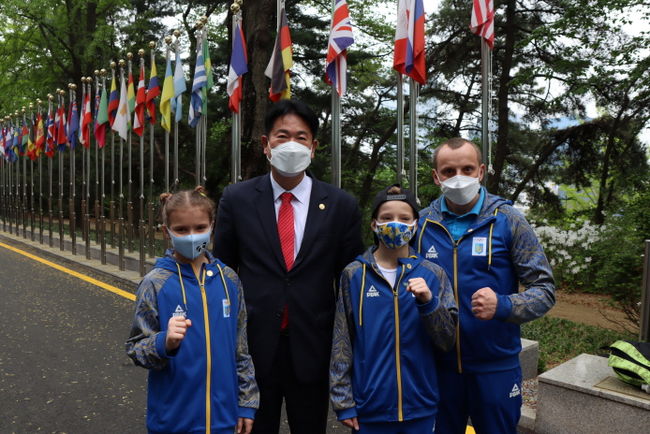 4월 25일(월) 오전 11시 다비드 가브리로프(Davyd GAVRYLOV, 2008년생) 군, 예바 가브리로바(Yeva GAVRYLOVA, 2010년생) 양, 그리고 선수들의 아버지이자 매니저인 루슬란 가브리로프(Ruslan GAVRYLOV, 1979년생) 씨 등 3명의 우크라이나 선수단 일행은 국기원을 방문, 의미 있는 시간을 보냈다.