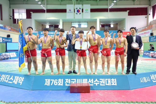 충무중학교(경상남도)가 ‘제76회 전국씨름선수권대회’ 중학부 단체전에서 정상을 차지했다.