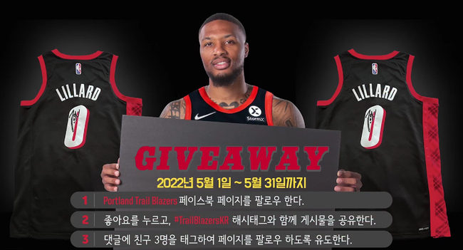 포틀랜드 공식페이스북 페이지는 1일 슈퍼스타 데미안 릴라드의 친필사인이 들어간 유니폼을 한국팬들에게 선물하는 이벤트를 실시한다고 발표했다. 5월 1일부터 31일 사이에 응모가 가능하다.