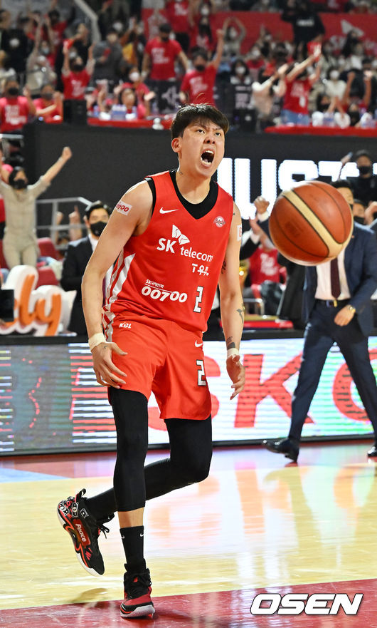 서울 SK는 2일 서울잠실학생체육관에서 열린 2021-2022 정관장KGC 프로농구 챔피언결정전 1차전서 안양 KGC에 90-79로 승리했다. 이로써 SK는 챔프전 첫 경기서 승리를 거두며 통합 챔피언을 위한 행보를 이어갔다.