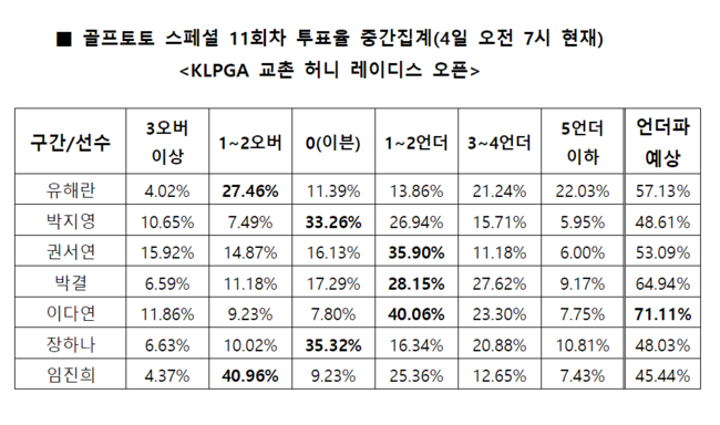 KLPGA 교촌 허니 레이디스 오픈 1라운드 대상 골프토토 스페셜 11회차 중간집계