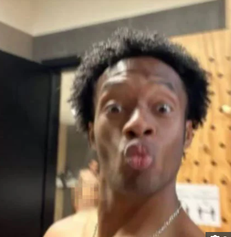 SNS에 올라온 사진에서 콰드라도의 특이한 헤어 스타일 이상으로 관심을 모은 것은 배경에 존재하는 완전 탈의 상태로 샤워실에 있는 보누치