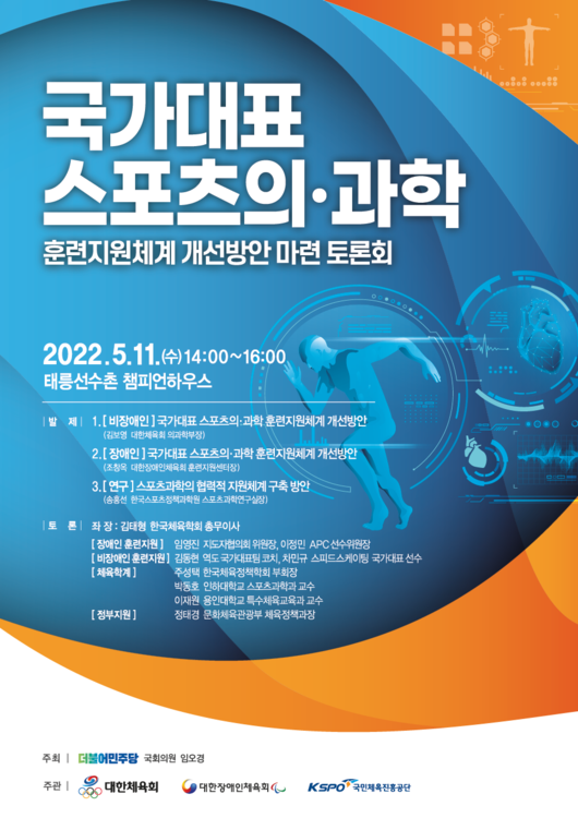 국회 문화체육관광위원회 임오경 의원이 주최하는 이 행사는 국가대표 스포츠의·과학 지원체계에 대한 현황 및 한계를 논의하고, 다양한 현장 체육인의 목소리를 들어 바람직한 정책대안을 마련하기 위해 진행하는 행사다.