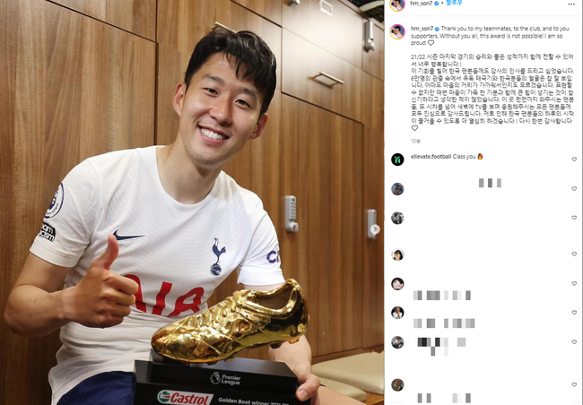 경기 후 손흥민은 자신의 인스타그램에 한국 팬들에 대한 감사 인사를 남겼다. 그는 "마지막 경기와 좋은 성적을 전할 수 있어서 너무 기쁘다"라고 입을 열었다.