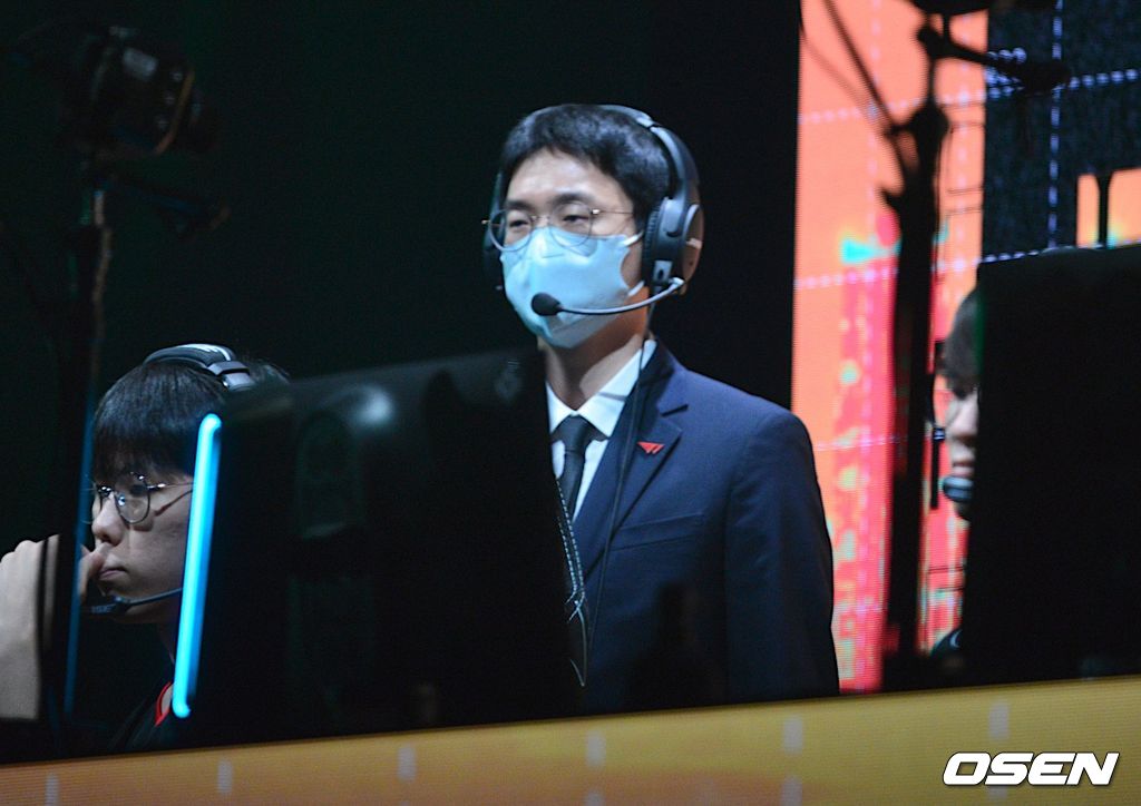 “불안한 걸 말하자면 많은 팬 분들도 비슷한 심정일거라고 예상해 본다. 대회 초기에 있어서 현장과 핑에 적응하는 문제, 메타와 챔피언 팀 입장에서 수행하면서 부족함 점이 있었다는 것이 사실이다. 1-5 킬 스코어가 되면서 좋지는 않았는데, 불리하더라도 믿음이 있었다. 하나를 덧붙여 말씀 드린다면 LOL 선수 출신이 아니기 때문에 디테일적인 면은 부족해도 선수들의 밴픽을 통해 인게임적 상황은 만들어줄 수 있다. G2와 두 번째 경기에서는 중반 이후에는 잘 풀어가리라는 믿음이 있어 불안하지 않았다.