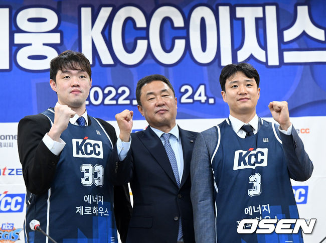 KCC는 24일 오후 서울 서초동 KCC 본사에서 이승현과 허웅의 입단식을 거행했다. 두 선수 모두 계약기간 5년, 보수총액 7억 5천만 원의 조건에 KCC와 계약했다. 용산고 선후배 사이인 ‘국가대표 빅맨’ 이승현과 ‘KBL 아이돌’ 허웅의 입단으로 KCC는 이정현과 송교창의 공백을 메우며 우승후보 전력을 갖추게 됐다.