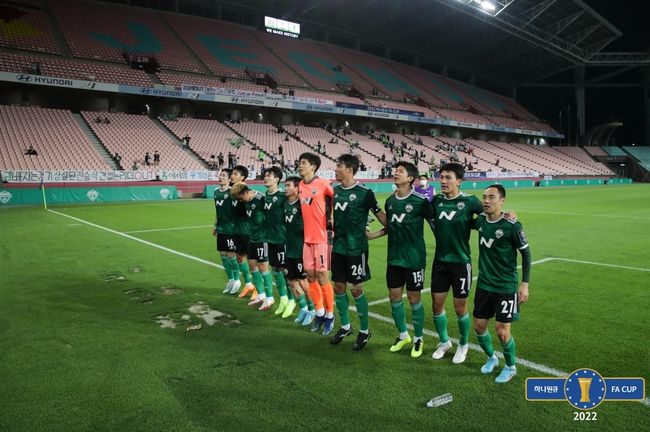 전북 현대는 25일 전주월드컵경기장에서 열린 2022 하나원큐 FA컵 16강 울산시민축구단과 맞대결서 1-0으로 승리했다. 이날 승리로 전북은 FA컵 8강에 올랐다.