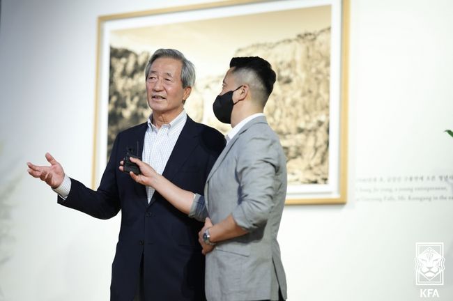 한일월드컵 20주년 소감에 대해 정 회장은 “2002년을 생각하면 아직도 엊그제 같다. 20년이 지났나 싶다. 히딩크 감독과 많은 선수 코칭스태프들이 열심히 해서 국민들에게 커다란 기쁨과 자부심을 줘 기쁘게 생각한다”며 웃었다.
