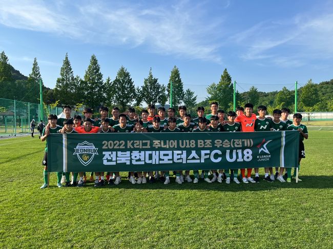 전북U18은 지난 28일 광주U18와의 2022 K리그 주니어 B조 전기리그(이하 전기리그)의 마지막 리그 경기에서 2-1로 승리를 거두고 9승 1패 성적으로 창단 첫 전기리그 우승을 차지했다.