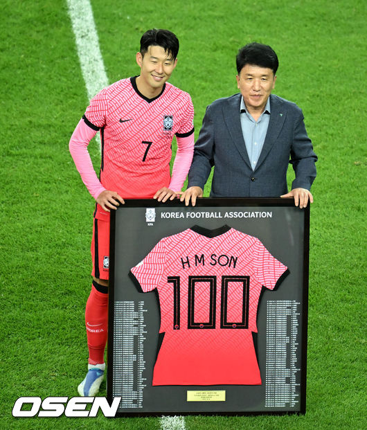 A매치 100번째 경기에서 축포를 터트린 손흥민(30, 토트넘)이 동료들에게 공을 돌렸다.