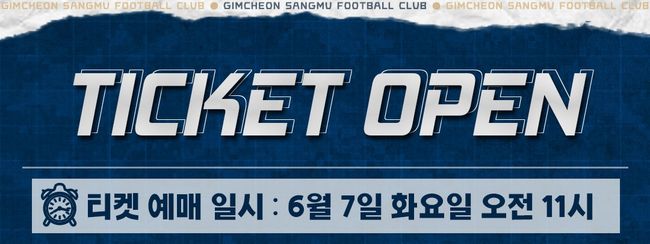 김천 상무는 7일 오전 11시, 온라인 예매 사이트 티켓링크를 통해 17일 오후 7시 김천종합운동장에서 열리는 ‘하나원큐 K리그1 2022’ 16라운드 수원FC와 홈경기 티켓 예매를 시작한다.