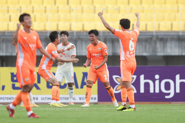 K리그2 40라운드 베스트 매치는 17일광양축구전용구장에서 열린 전남드래곤즈 대 대전하나시티즌 경기다. 이날 경기에서 전남은 전반 15분 이중민의 선제골로 앞서갔지만, 대전 김인균이 후반 26분 동점 골을 터뜨려 1-1 무승부로 막을 내렸다. / 10bird@osen.co.kr