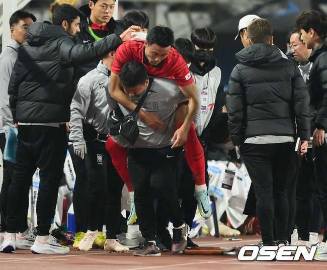 불의의 사고도 터졌다. 전반 37분 박지수가 왼쪽 발목을 다쳐 교체됐다. 조유민이 급하게 투입됐다. 벤투 감독도 근심어린 눈으로 박지수의 상태를 살폈다. 한국이 전반전을 1-0으로 리드했다. / jasonseo34@osen.co.kr