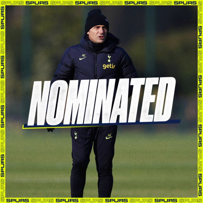 안토니오 콘테(토트넘) 감독이 '이달의 감독상' 후보에 선정됐다.