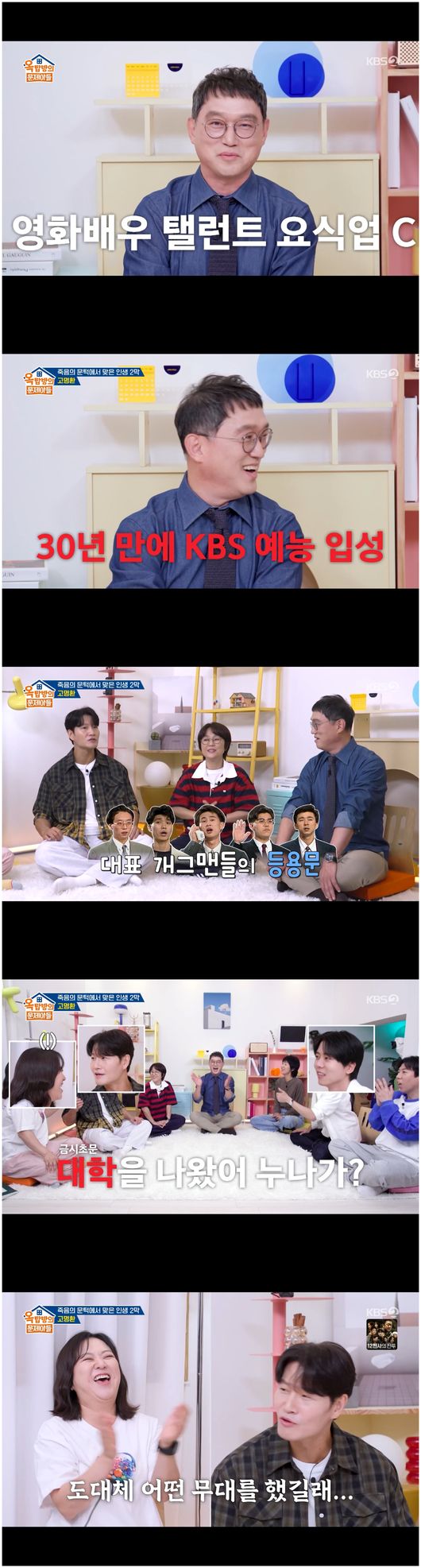 21일 방영한 KBS2TV 예능 ‘옥탑방의 문제아들’에서는 개그맨, 배우, 강연, 요식업CEO, 작가로 활약하는 개그맨 고명환이 등장했다. 그는 홍진경, 송은이, 김숙과 각별한 인연을 갖고 있었다.