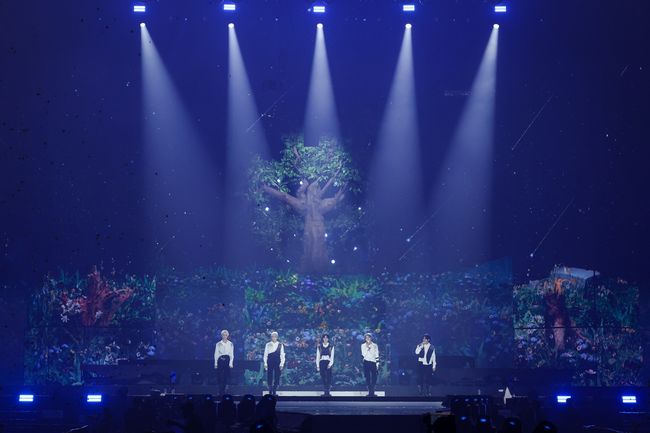 압도적인 연출은 공연에 재미를 더했다. 거대한 LED 타워와 용 형상의 조형물이 세트가 무너지는 듯한 장면을 만들어냈다. 이어 펼쳐진 푸른 숲은 황홀경을 선사했다. 여기에 향기를 입힌 컨페티가 객석에 흩날려 시각과 청각을 넘어 후각까지 자극하는 특별한 공연을 완성했다. 다섯 소년이 약속했던 내일을 향해 함께 나아간다는 서사와 몰입감 있는 연출, 압도적인 라이브 퍼포먼스의 조화는 ‘스테이지텔러’(스테이지와 스토리텔러의 합성어)라는 수식어에 걸맞았다.