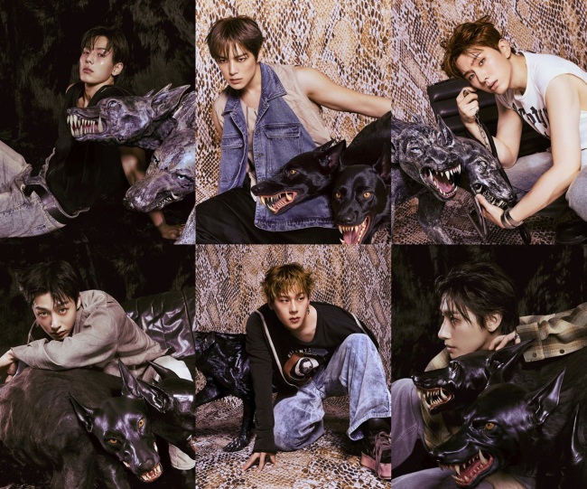공개된 사진 속 몬스타엑스는 마치 개가 인간으로 변한 듯 어설프게 입은 의상과 정돈되지 않은 헤어스타일로 자유분방하면서도 강렬한 비주얼을 완성했다. 또한 신화 속에서 튀어나온 듯한 비현실적인 대형견들이 등장해 멤버별 개성과 콘셉트를 극대화했으며, 멤버들은 다채로운 포즈를 통해 야성미와 범접 불가한 오라를 발산했다.
