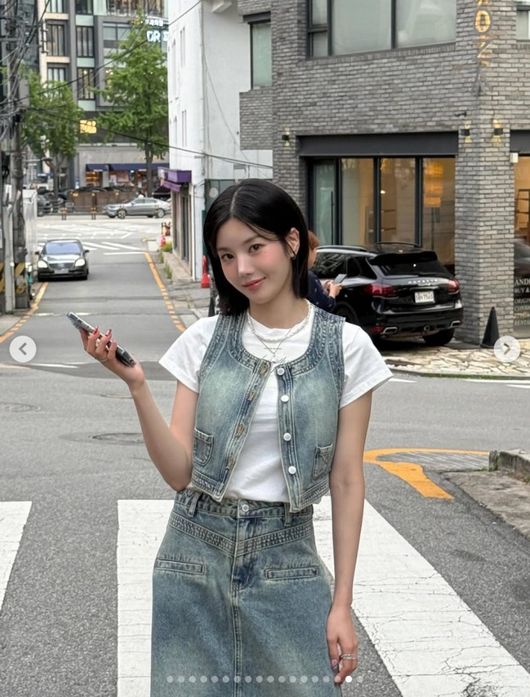 또 권은비는 여름에 어울리는 연청치마와 흰색 티셔츠, 청 조끼로 상큼한 매력을 자랑하기도 했다. 길거리에서 찍은 사진이지만 자연스러운 매력이 담긴 화보 같았다. 권은비의 다양한 매력을 담은 일상이었다.