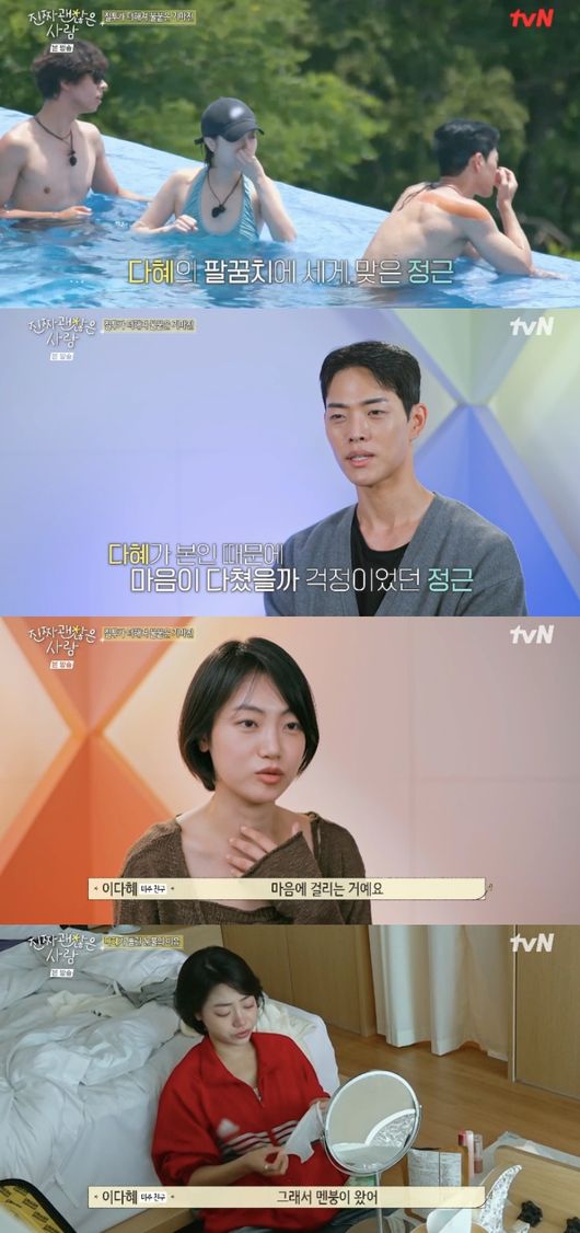 이다혜는 “나 때문에 누가 다친 게 너무 싫었다. 정근 씨한테 사과를 제대로 못한 게 마음이 걸리더라. 다쳤고”라고 미안함을 드러냈다.