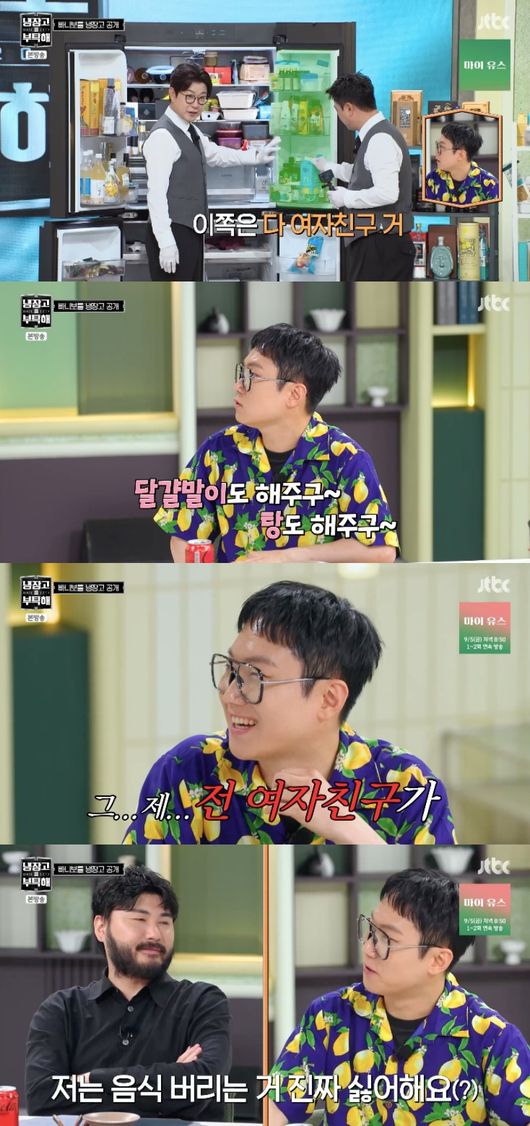 ‘냉장고를 부탁해’ 빠니보틀이 현재 여자친구와 전 여자친구 흔적이 담긴 냉장고를 공개했다.