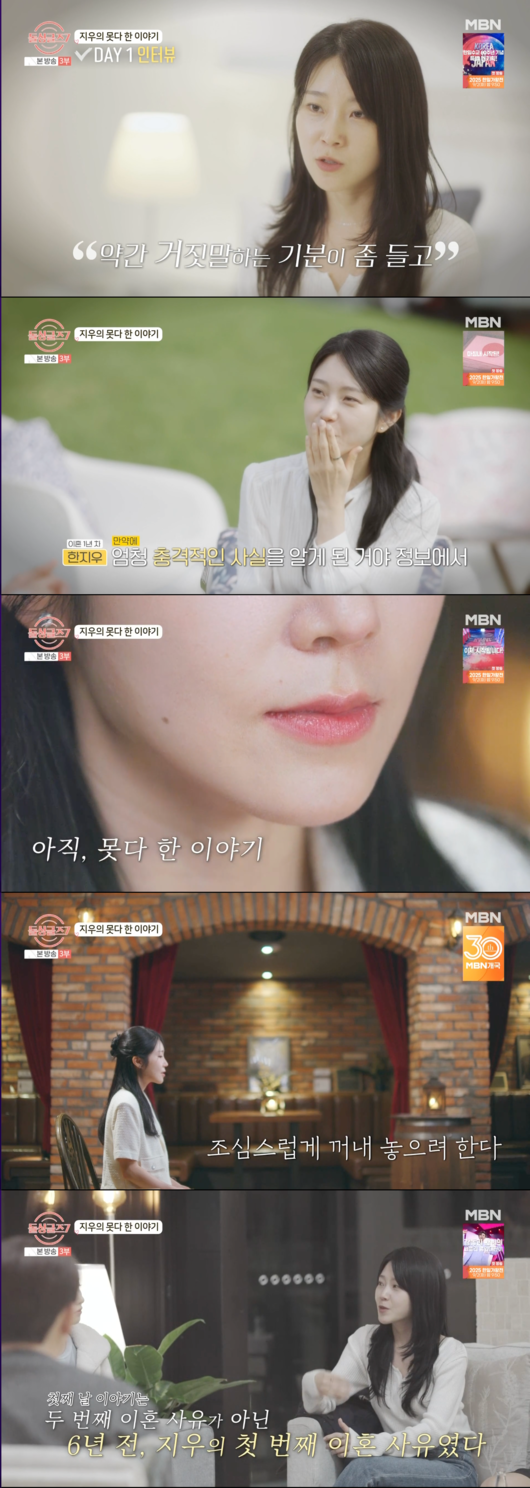 '돌싱글즈7’ 지우가 그동안 숨겨왔던 두 번의 이혼이라는 비밀을 공개했다.
