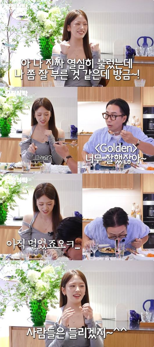 또 정재형은 안유진에게 화제가 됐던 넷플릭스 애니메이션 ‘케이팝 데몬 헌터스’의 ‘골든(Golden)’ 커버에 대해서도 물었다. 안유진은 “춤 잘 추는 것도 너무 멋있지만 노래 잘하는 게 진짜 멋있다고 생각한다”라고 말했고, 정재형은 “’골든’ 잘했잖아”라면서 칭찬했다. 이에 안유진은 “그래요? 아직 멀었죠”라고 덧붙여 웃음을 주기도 했다.