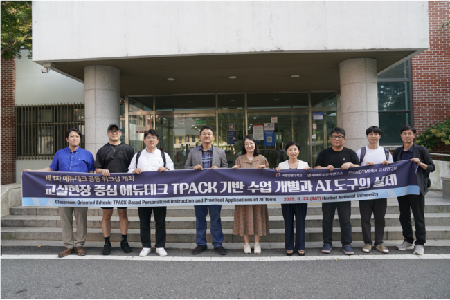 국립한밭대학교(총장 오용준, 이하 ‘한밭대학교’)는 지난 23일, 국립한밭대학교 SW융합연구소, 연세대학교 교육연구소와 전국AIDT교사연구회가 공동주최하고 국립한밭대학교 SW융합연구소가 주관하는 제 1차 에듀테크 공동워크샵을 ‘교실현장 중심 에듀테크: TPACK 기반 수업 개발과 AI 도구의 실제’라는 주제로 개최했다.